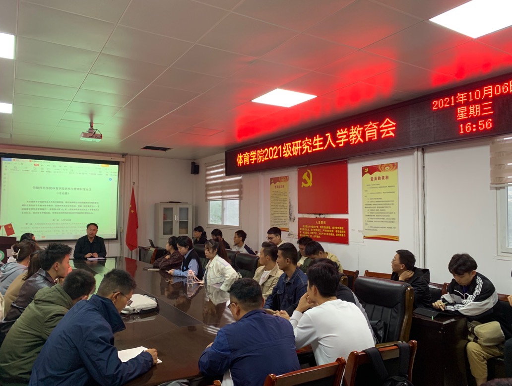 10月6日下午,pg娱乐电子游戏官网入口2021级研究生入学教育活动在三楼会议室召开。主管研究生工作副院长张翔为研究生新生讲授入学第一课。