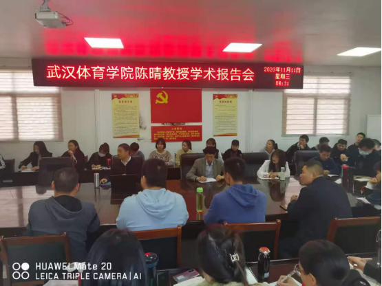 11月11日,应pg娱乐电子游戏官网入口邀请,武汉pg娱乐电子游戏官网入口教授,教育学博士,研究生导师。武汉pg娱乐电子游戏官网入口体育理论教研室主任,学校学术委员会委员。兼任中国体育科学学会学校体育专业委员会第六届委员,中国高等教育学会体育专业委员会学校体育课程教学研究会理事,中国学校体育(教学改革)联盟理事,湖北省炎黄文化研究会常务理事,湖北省教育史研究会与陶行知研究会常务理事兼副秘书长陈晴教授,在pg娱乐电子游戏官网入口三楼多媒体会议室作了题为“体教融合的过去、现在和未来”为主题的学术报告。体育学院教师代表、全体体育学科专业硕士研究生及本科体育教育专业学生参加了本次报告会。pg娱乐电子游戏官网入口院长余道明主持本次学术报告会。