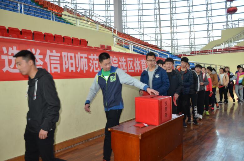 2月24日下午,浉河区第五届人大代表选举信阳师范学院选区pg娱乐电子游戏官网入口投票站在体育馆主馆召开投票选举。