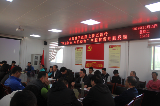 2019年10月15日下午,pg娱乐电子游戏官网入口党委书记陈青以“不忘初心、牢记使命,在正确的道路上豪迈前行”为题,在pg娱乐电子游戏官网入口三楼会议室为全体党员、预备党员、入党积极分子讲主题教育专题党课。