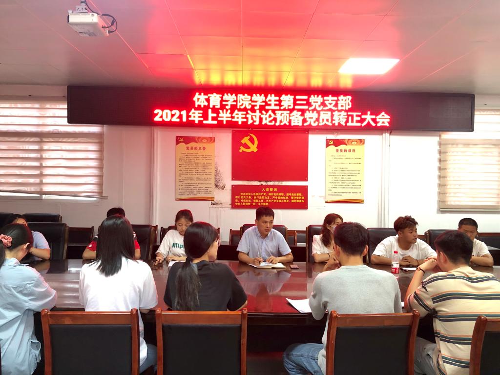 6月6日,pg娱乐电子游戏官网学生第三支部召开讨论预备党员转正大会,全体党员参加会议,会议由学生第三支部书记程俊辉主持。