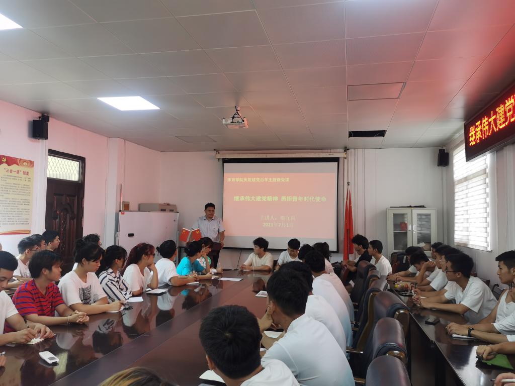 7月1日中午,pg娱乐电子游戏官网入口党委委员、副处级辅导员柴九昌为pg娱乐电子游戏官网党员、入党积极分子讲庆祝建党100周年微党课“继承伟大建党精神,勇担青年时代使命”主题党课,学生党支部书记程俊辉、赖梦玥与60余名党员、入党积极分子参加。