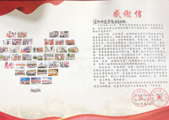 近日,辉县市峪河镇党委、人民政府向信阳师范学院pg娱乐电子游戏官网入口发来感谢信、捐赠接收证明和锦旗,对我院热心参与峪河镇灾后重建、为峪河镇人民爱心募捐等各项善举表示衷心感谢,向pg娱乐电子游戏官网入口参与救灾的广大师生表示诚挚谢意。