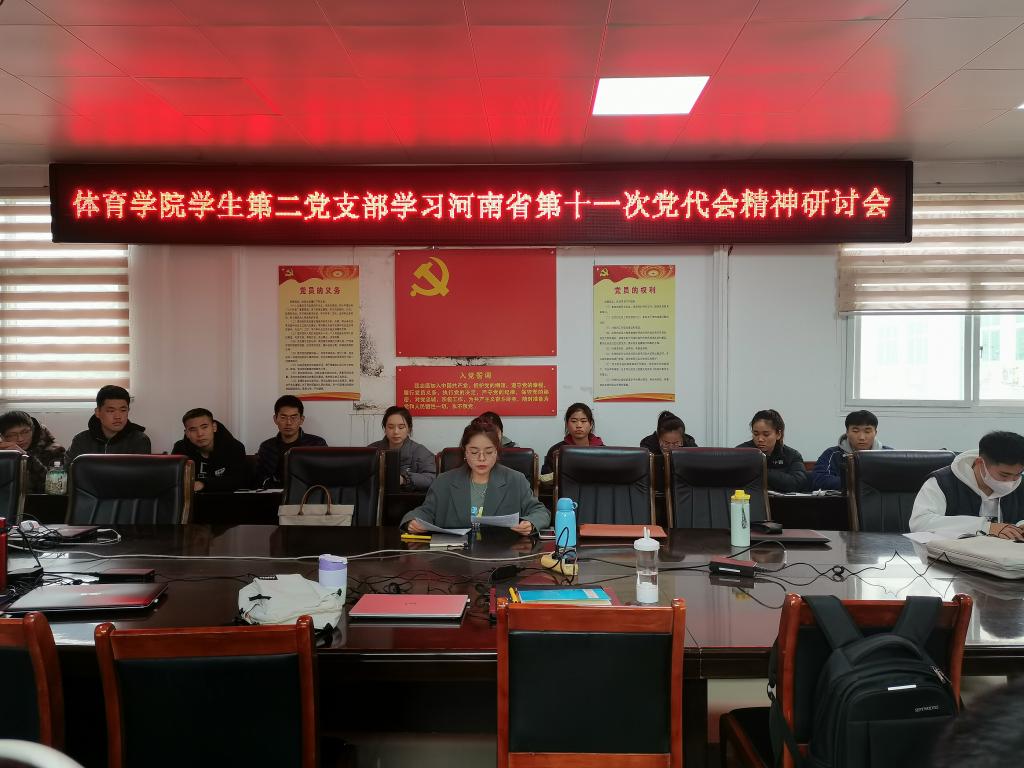 11月17日中午,pg娱乐电子游戏官网入口学生第二党支部学习河南省第十一次党代会精神研讨会在院三楼会议室召开,学生第二党支部全体党员及发展对象参加会议,会议由党支部书记赖梦玥主持。