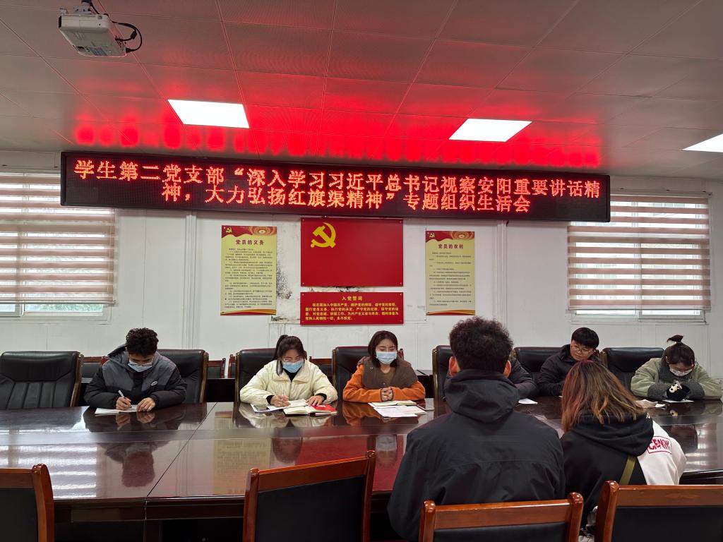 11月22日,pg娱乐电子游戏官网入口学生第二党支部召开“深入学习习近平总书记视察安阳重要讲话精神,大力弘扬红旗渠精神”专题组织生活会,学二支部全体党员参加会议,会议由学二支部书记赖梦玥主持。