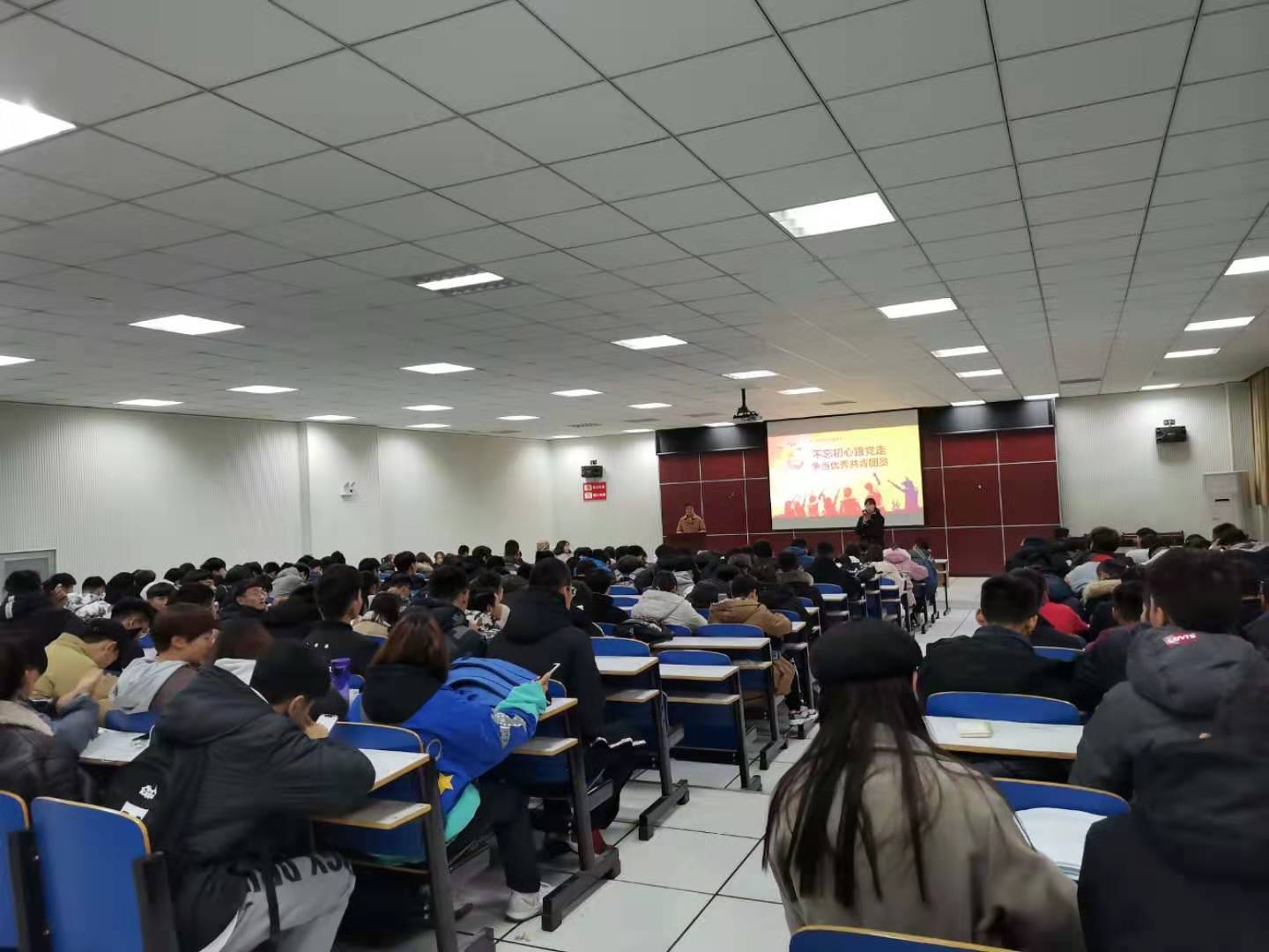 2019年11月26号下午四点半pg娱乐电子游戏官网于体育馆多媒体教室举行“不忘初心跟党走,做合格共青团员”主题团课,本次团课的主讲人为赵倩倩老师,19级辅导员赖梦玥老师及2019级新生参会。