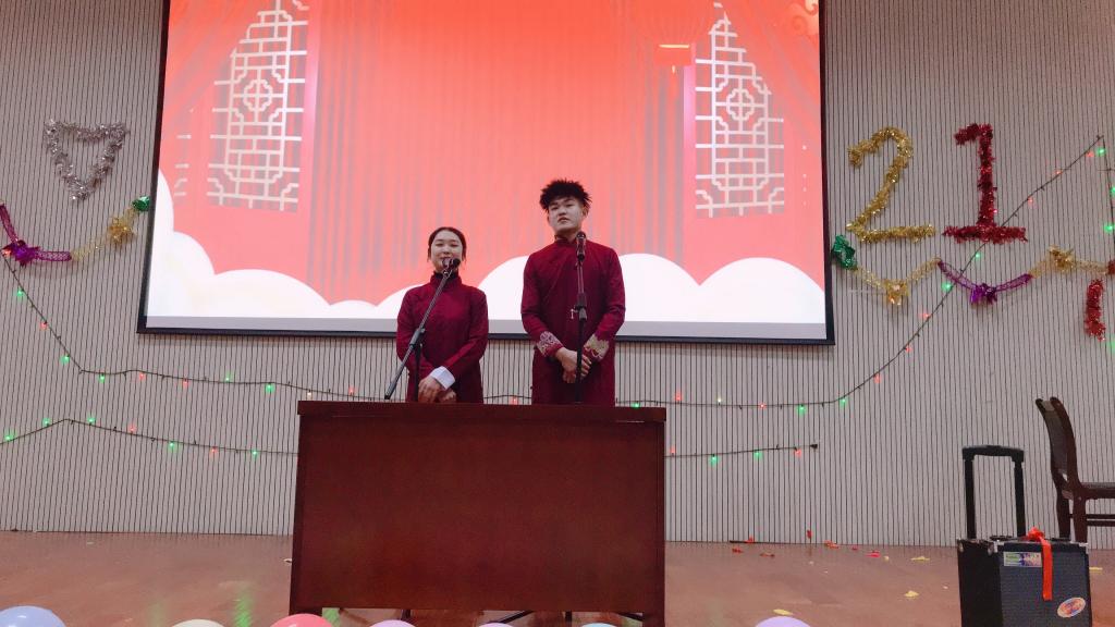 元旦晚会由健美操协会表演的精彩一舞拉开帷幕。一曲《信仰》,让大家感受到来自生命的力量,一曲唱罢,荡气回肠。张碧玉、高毅表演的相声《抗疫之心》,让我们感受到全民抗疫的信心和决心。卓勇吉他弹唱、赵佳昌以非洲鼓伴奏,给大家带了一曲优美动听的歌曲《我很好》。在优美的歌声中穿插游戏使的气氛更加活跃。此次元旦晚会节目精彩纷呈,话剧《祝你幸福》、小品《确认过眼神》笑点密集,给大家带来许多欢乐,一曲《十年》让人沉浸在美妙的旋律中,《跆舞双截棍》、武术表演、独舞《Love potion》让人大饱眼福,同时开启抽奖活动,将气氛带到高潮。一曲《你是人间四月天》结束了本次元旦晚会。