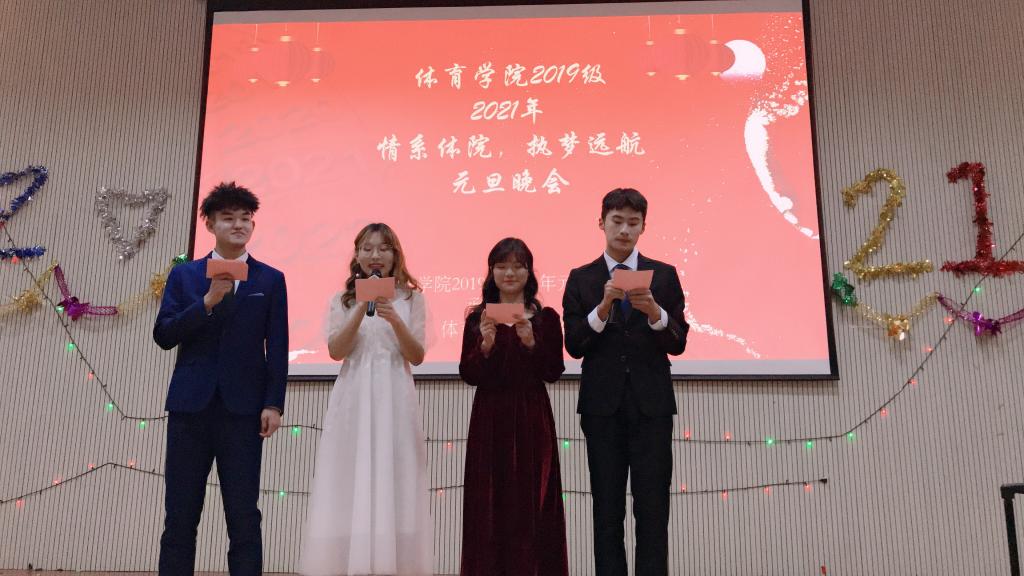元旦将至,为庆祝元旦佳节,进一步推进系文艺活动的蓬勃发展,丰富校园文化生活,活跃学习氛围,给同学们一个真正展示自我风采和勇气的舞台。pg娱乐电子游戏官网于2020年12月25日晚七点于人文楼报告厅举办“2019级元旦晚会”,本次晚会由19级学生自主筹办,由副处级辅导员柴九昌老师,团委老师程俊辉老师,19级辅导员赖梦玥老师,20级辅导员龙慧杰老师出席,19级全体学生参加。