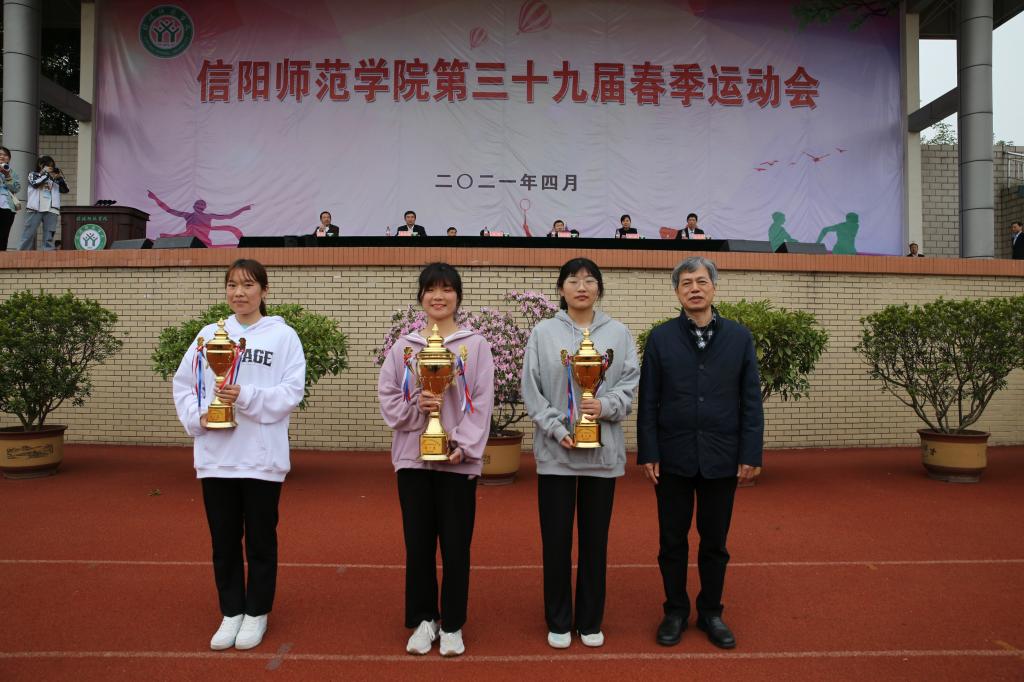 校长李俊为田径男子乙组团体、女子乙组团体获奖代表队颁奖