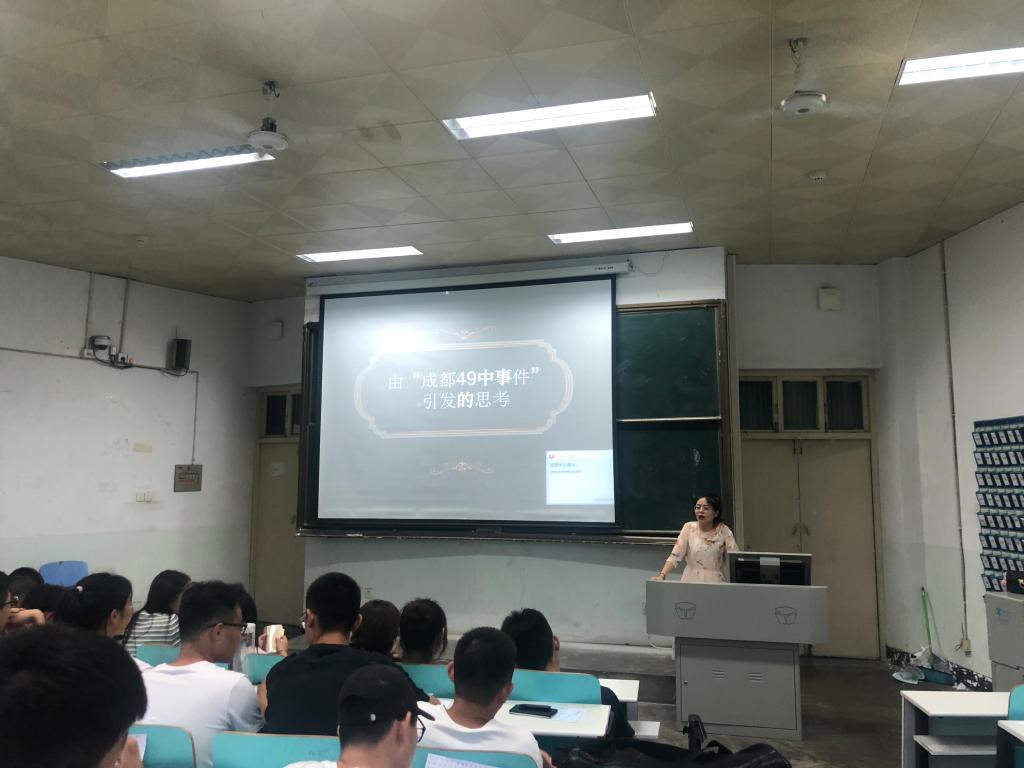 2021年5月9日,成都49中学发生的一起在校学生高坠死亡事件在网络上引起热议,在舆论的发酵时期,不少民众被情绪煽动,传播了一些未经过证实的谣言。为了帮助学生提高素养,理性对待突发事件,不被谣言控制,学会独立思考,不轻易做出判断,6月2日,pg娱乐电子游戏官网入口2019级各班陆续开展“营造和谐网络空间,塑造健康美丽心灵”主题班会,班会由辅导员赖梦玥主持,2019级全体学生参与班会。