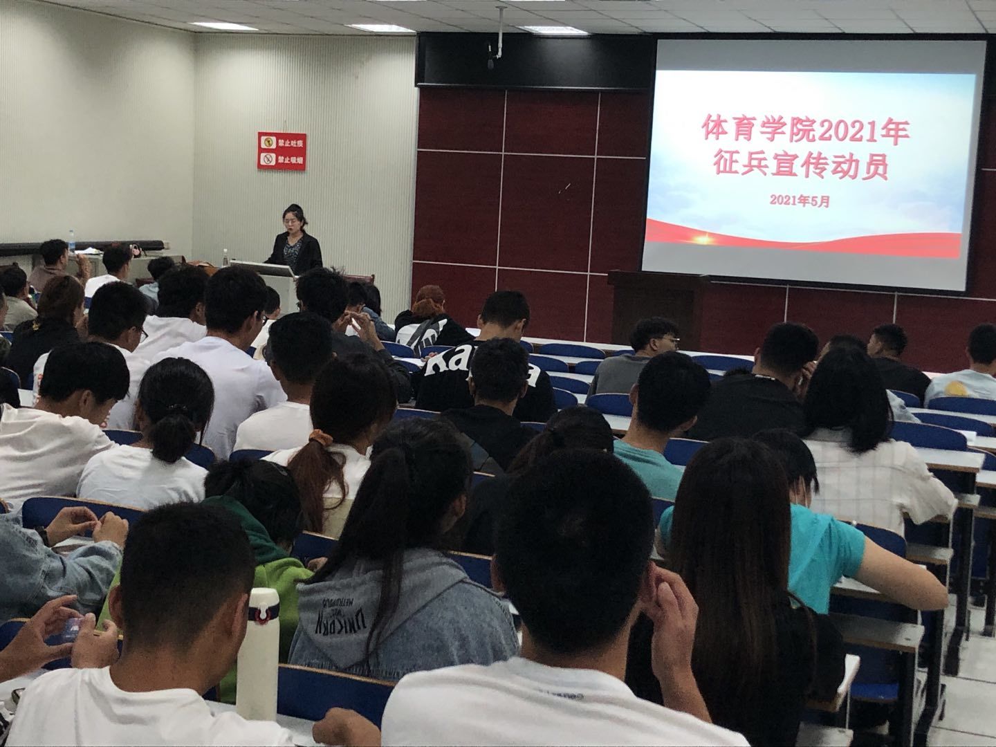 为了促进国防现代化,鼓励学生积极参与应征入伍,提高兵源征集质量,推进国防和军队现代化建设,5月16日,pg娱乐电子游戏官网入口2019级召开大学生征兵宣传动员会,2019级辅导员赖梦玥主持会议,pg娱乐电子游戏官网入口武装干事龙慧杰出席会议,2019级全体学生参与会议。