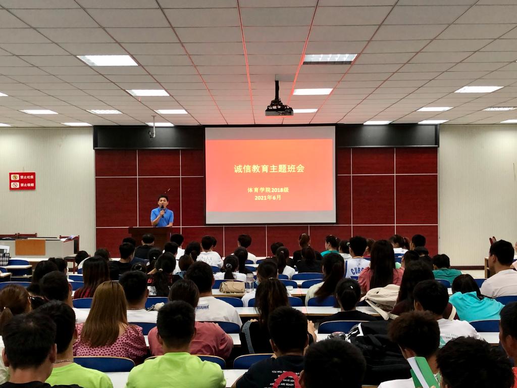 2021年6月21日晚,pg娱乐电子游戏官网入口2018级全体学生于体育馆多媒体教室开展了“诚信教育”主题班会,班会由2018级辅导员程俊辉主持,旨在进一步培养大学生的诚信品质,提高诚信意识,全面提高大学生的思想道德素质,引导学生树立诚信理念,践行社会主义核心价值观,促使学生养成“诚信待人、诚信处事、诚信学习、诚信立身、诚信考试”的良好习惯,大力弘扬诚信文化,切实提升学生的诚信品质、自律意识和社会责任感。