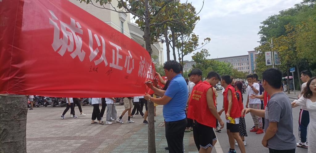 活动现场,“诚以正心,诚以明德,做诚信学子,创诚信校园”的红色条幅分外醒目,pg娱乐电子游戏官网入口学子纷纷拿起签字笔,郑重地在诚信横幅上写下自己的名字,做出诚信承诺。签名活动不仅仅是一种形式,更重要的是为了弘扬诚信道德风尚,重诺言,讲信誉,守信用。同学们要从现在做起、从具体的小事做起,在考试中诚信考试、拒绝作弊,生活中重信守诺、真诚待人。