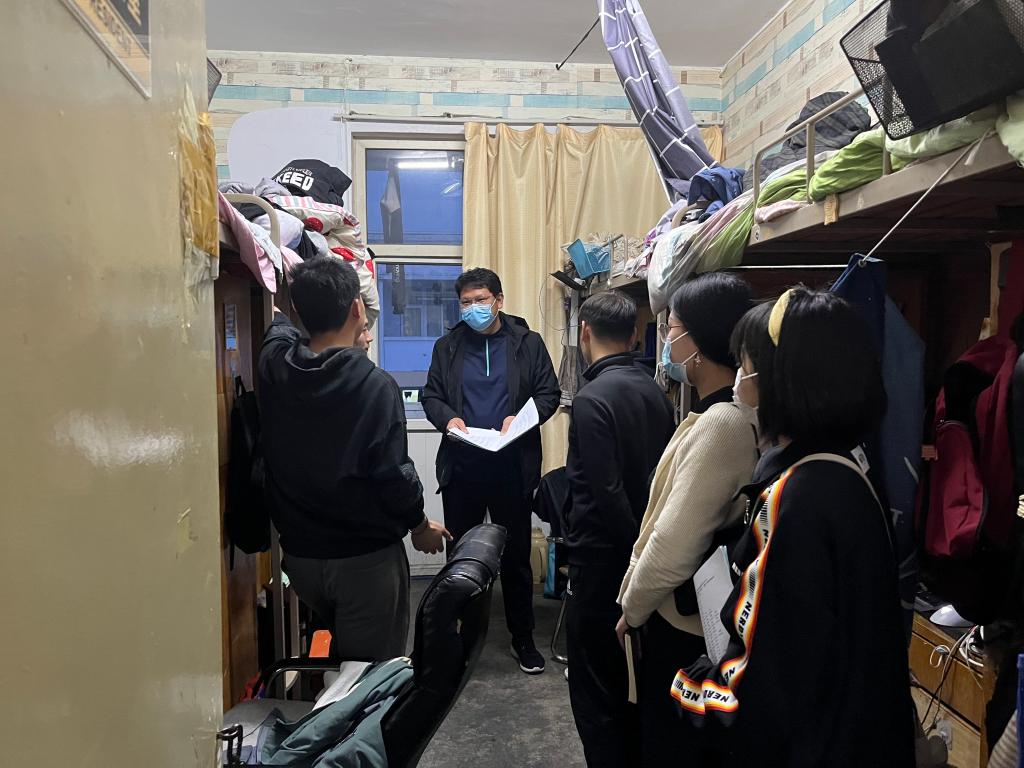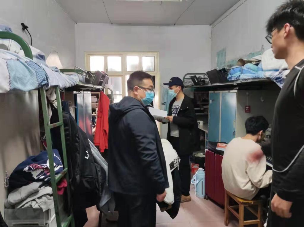 为了解清明节假期在校学生情况,3日、4日,pg娱乐电子游戏官网副院长杨晶伟、张翔、党委副书记柴九昌带领全体辅导员逐一走访学生宿舍。