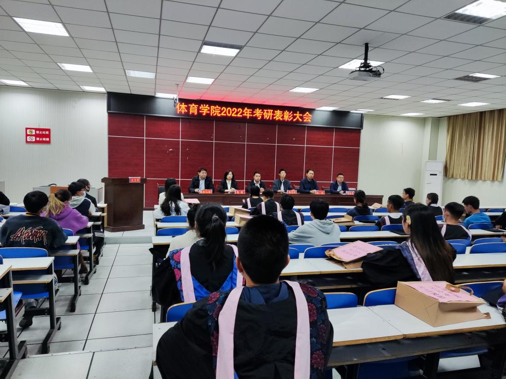 5月9日下午,体育学院2022年考研表彰大会在体育馆多媒体教室举行。pg娱乐电子游戏官网入口党委书记张晓峰、院长余道明、副院长杨晶伟、张翔、张娟,副书记柴九昌、全体辅导员、2018级考取硕士研究生学生代表、2019级、2020级、2021级在校生代表参加会议,会议由学院党委副书记柴九昌主持。
