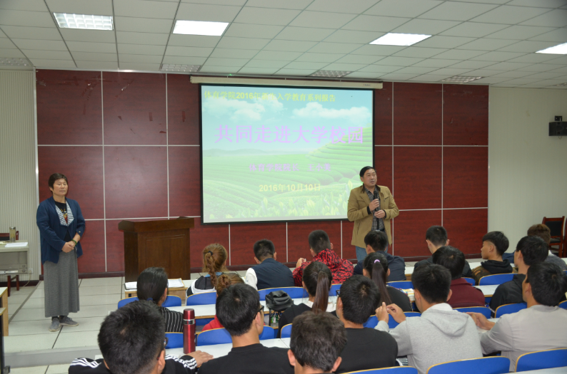 2016年10月10日晚,pg娱乐电子游戏官网入口王小美院长在体育馆多媒体教室为新生召开《走进大学生活》入学讲座。参加此次讲座的有pg娱乐电子游戏官网入口党委副书记严彬、pg娱乐电子游戏官网入口党总支秘书柴九昌、辅导员老师陈卓,及2016级全体新生。