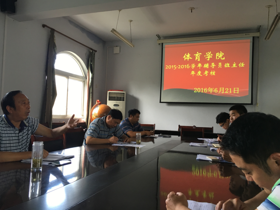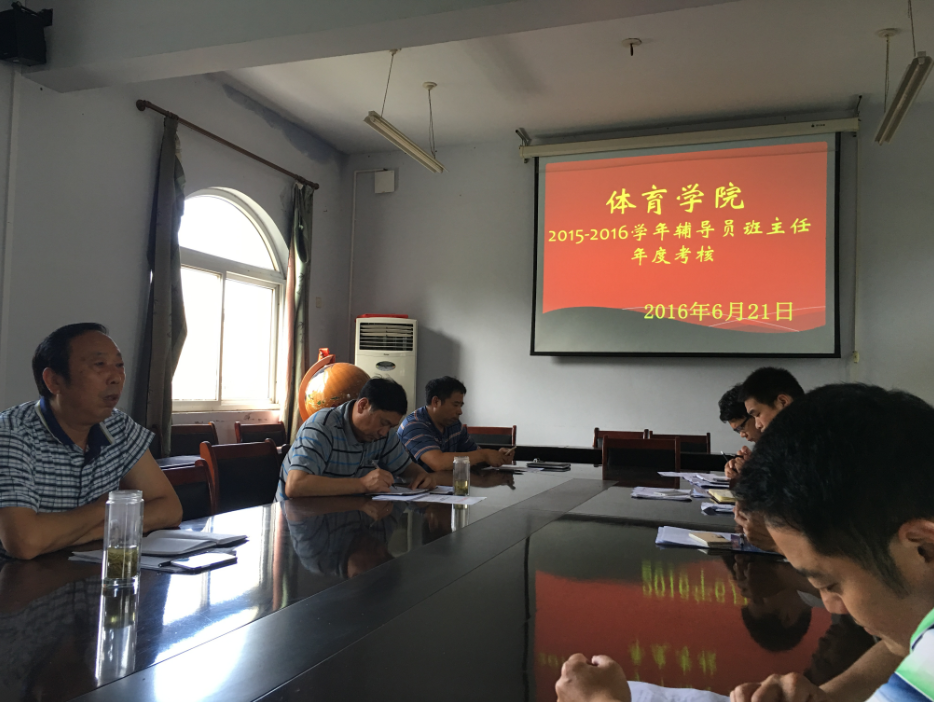 6月21日下午,pg娱乐电子游戏官网入口在系办三楼会议室召开了“pg娱乐电子游戏官网入口对辅导员、班主任进行2016年年终考核”。pg娱乐电子游戏官网入口党委书记陈青、副院长梁超勋、副书记严彬及班主任马峰、罗杰、杨明勇、张道启、柴九昌、鲁枝鑫、陈卓参加此次考核。考核由副书记严彬主持。