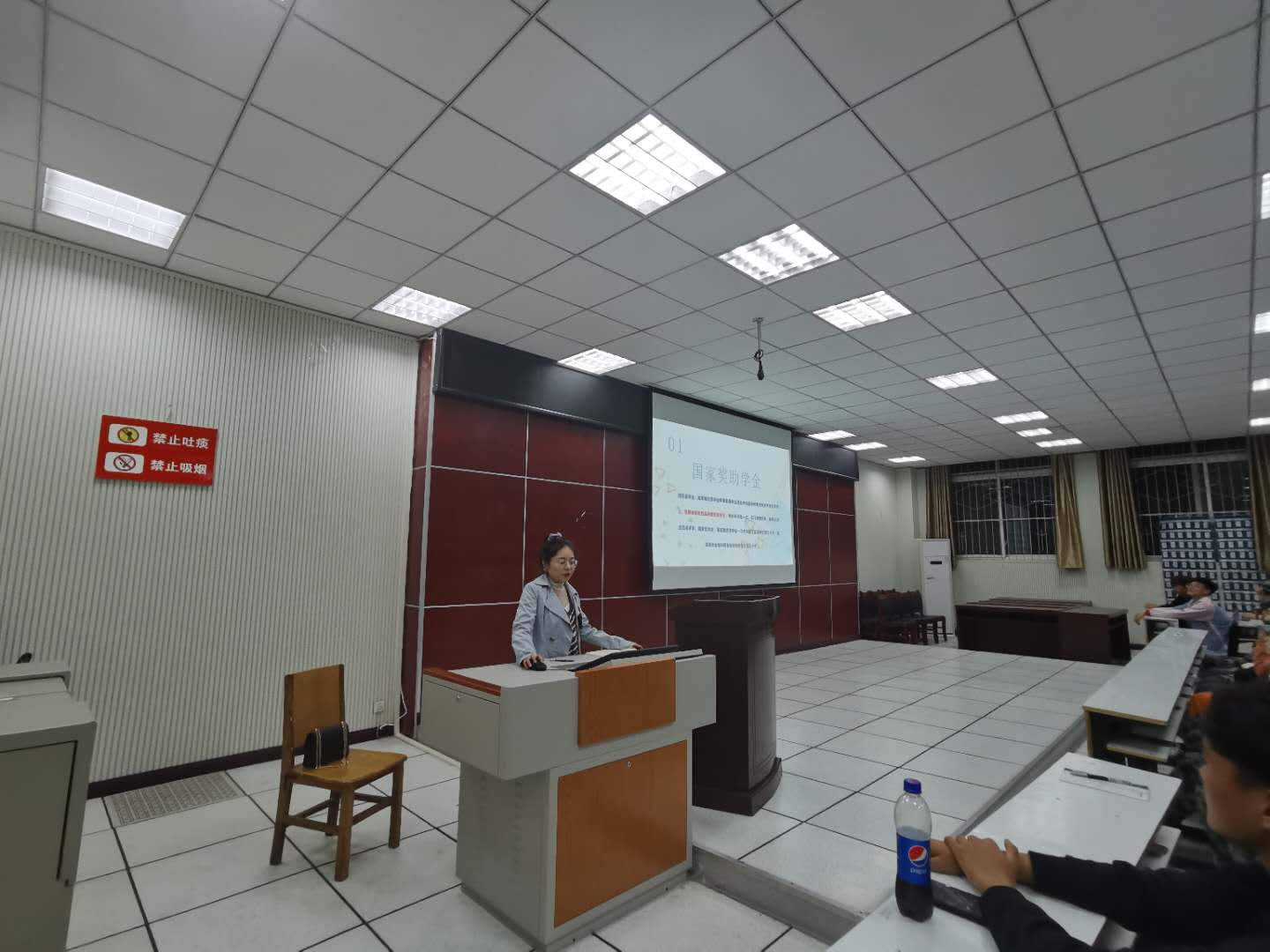 赖梦玥老师向在到场的所有学生全面介绍了国家奖助学金、国家励志奖学金、学校奖学金、勤工助学、困难学生补助等多种形式的国家高校资助政策体系。另就我校实际的经济困难认定办法及各个资助项目的申请条件、申请流程、还款办法等进行了详细的解读,确保同学们能够进一步了解国家相关资助政策。同时,她提醒同学们注意网络借贷、网络诈骗等不良现象,提醒同学们和家人提高警惕,增强安全意识,保护好个人人身安全和财产安全。