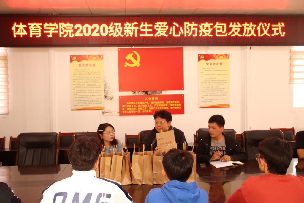 2020年10月19日中午13时,pg娱乐电子游戏官网举行2020级新生爱心防疫包发放仪式。举行此次活动是为加强新生对学校常态化疫情防控的认识以及落实学校常态化疫情防控工作。出席本次会议的有pg娱乐电子游戏官网入口副处级辅导员柴九昌,辅导员赖梦玥、程俊辉及20级部分新生。
