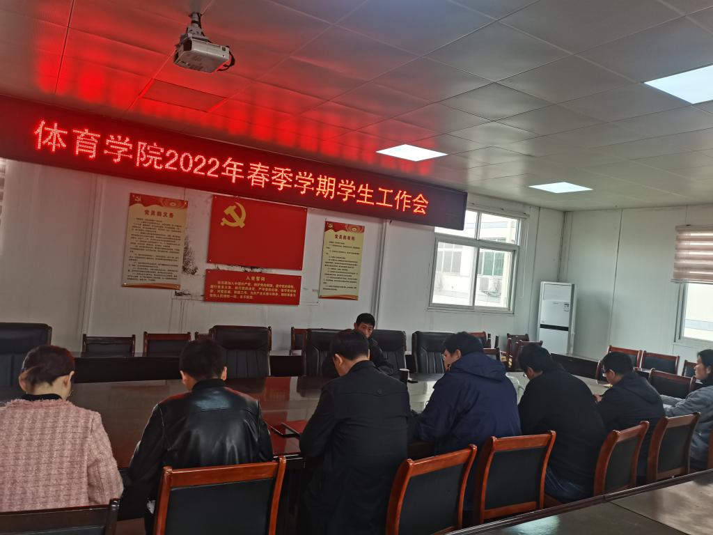 会上,柴书记首先传达了学校2022年春季学期学生工作会议会议精神,并从疫情防控、学生工作品牌建设、辅导员队伍建设、征兵工作、大学生心理健康、、第二课堂学习等方面部署近期工作,并指出,今年pg娱乐电子游戏官网入口将继续开展并完善pg娱乐电子游戏官网入口“文体计划”工作品牌,开展以“日日跑、周周练、月月读、基本功大赛”为基础的文体计划班培训,培养德智体美劳全面发展的体育生。