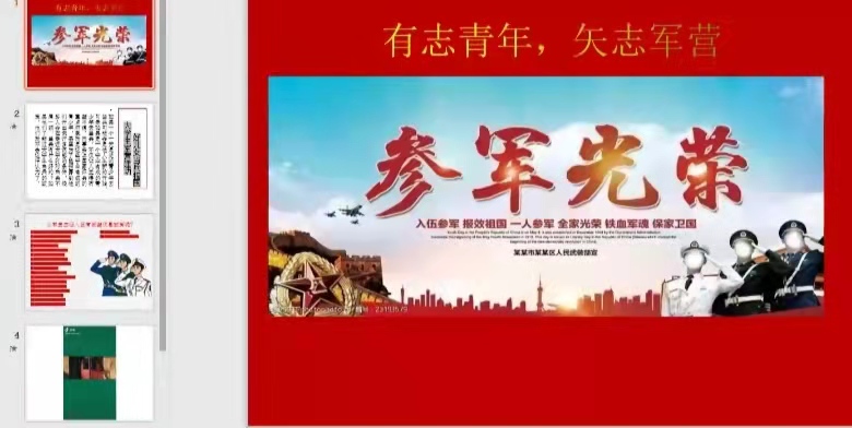 疫情防控背景之下,本次征兵宣传采取线上班会的形式开展,使同学们对大学生入伍有了新的认识,学习了征兵相关政策,了解了国家征兵工作相关条例,明白了当代大学生肩负着为国防事业奋斗、奉献的责任,增强了同学们主动服兵役和参军报国的使命感。积极参军,保家卫国,让爱国意识和爱国责任内化于心、外化于行。