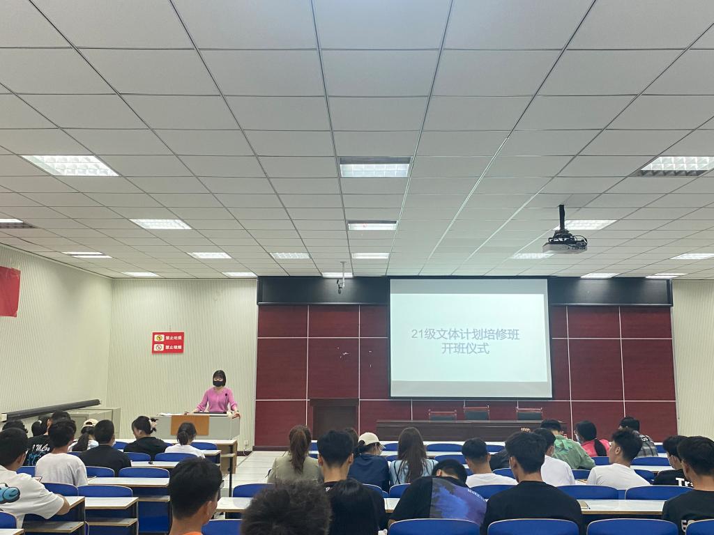 根据《信阳师范学院一流本科专业点培育与建设方案》的指导思想,主动适应国家战略发展新需求和学校人才培养发展新趋势,pg娱乐电子游戏官网入口于3月8日成立2022年度“文体计划培修班”,充分发挥新型体育专业的示范领跑作用。3月10日,21级在体育馆多媒体教室召开文体计划培修班开班仪式,会议由辅导员唐娟主持。