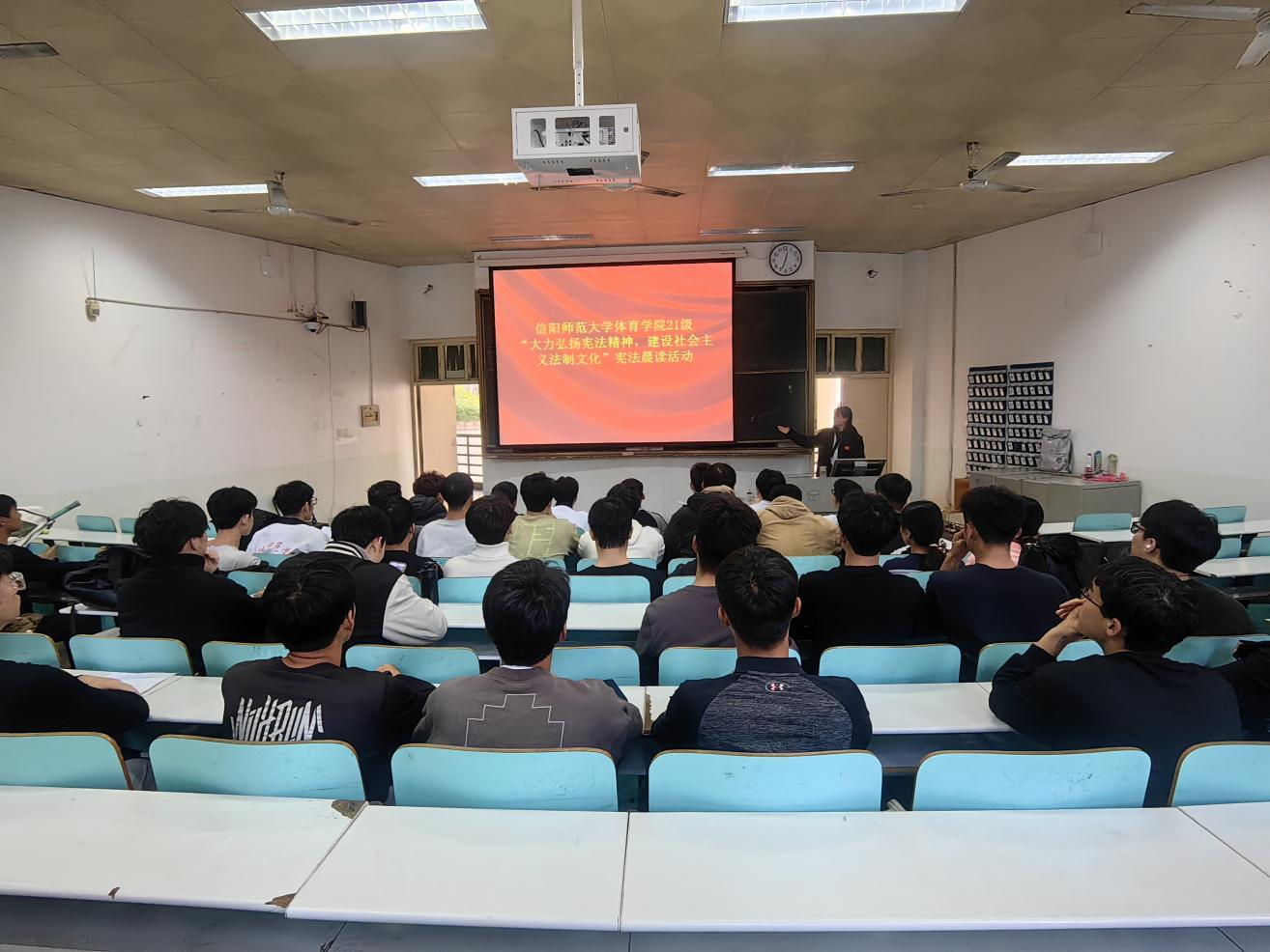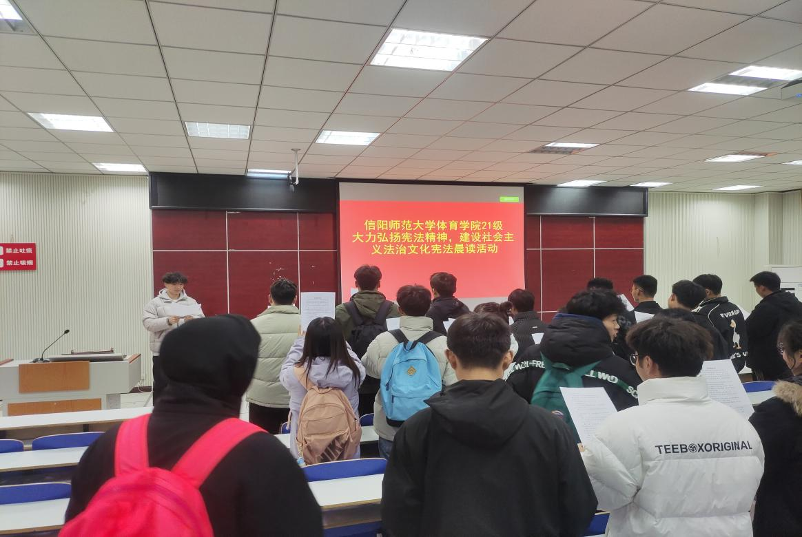 2023年12月4日是第十个国家“宪法日”,为深入贯彻落实党的二十大精神,大力弘扬宪法精神,营造良好法治氛围,12月6日早上,pg娱乐电子游戏官网入口2021级学生在体育馆多媒体教室集中开展了“大力弘扬宪法精神,建设社会主义法治文化”为主题的宪法晨读活动,引导师生体悟法治精神,感受宪法权威。