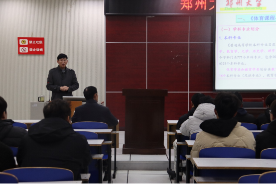 11月24日上午,pg娱乐电子游戏官网入口邀请郑州大学赵子建教授在体育馆多媒体教室为同学们开展主题为“体育课程与教学论”的讲座。 pg娱乐电子游戏官网入口2022级、2023级本科生和全体研究生参加。