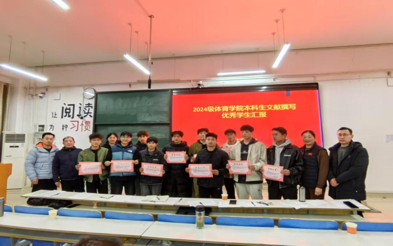 本次活动旨在引导大一学生快速进入论文撰写初步阶段的文献搜集、整理、归纳环节,培养体育教育专业学生的学术研究能力,为今后撰写学年论文、毕业论文打下坚实的基础。此次汇报会评出了一、二、三等奖,会后学院领导和评委分别为获奖学生颁发证书。一等奖获得者:秦安博(指导教师:黄新恒),席家豪(指导教师:冯硕),魏帅(指导教师:刘莹),孙赫(指导教师:唐永泉),刘洋(指导教师:陈广辉)孙浩源(指导教师:王刚)