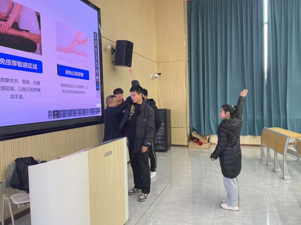 晋伟老师给同学们介绍了人体穴位,并对常见运动损伤的成因及康复按摩手法进行实操展示。此次讲座不仅提升了社会体育指导与管理专业学生的专业素养,也为其未来就业开拓了思路。