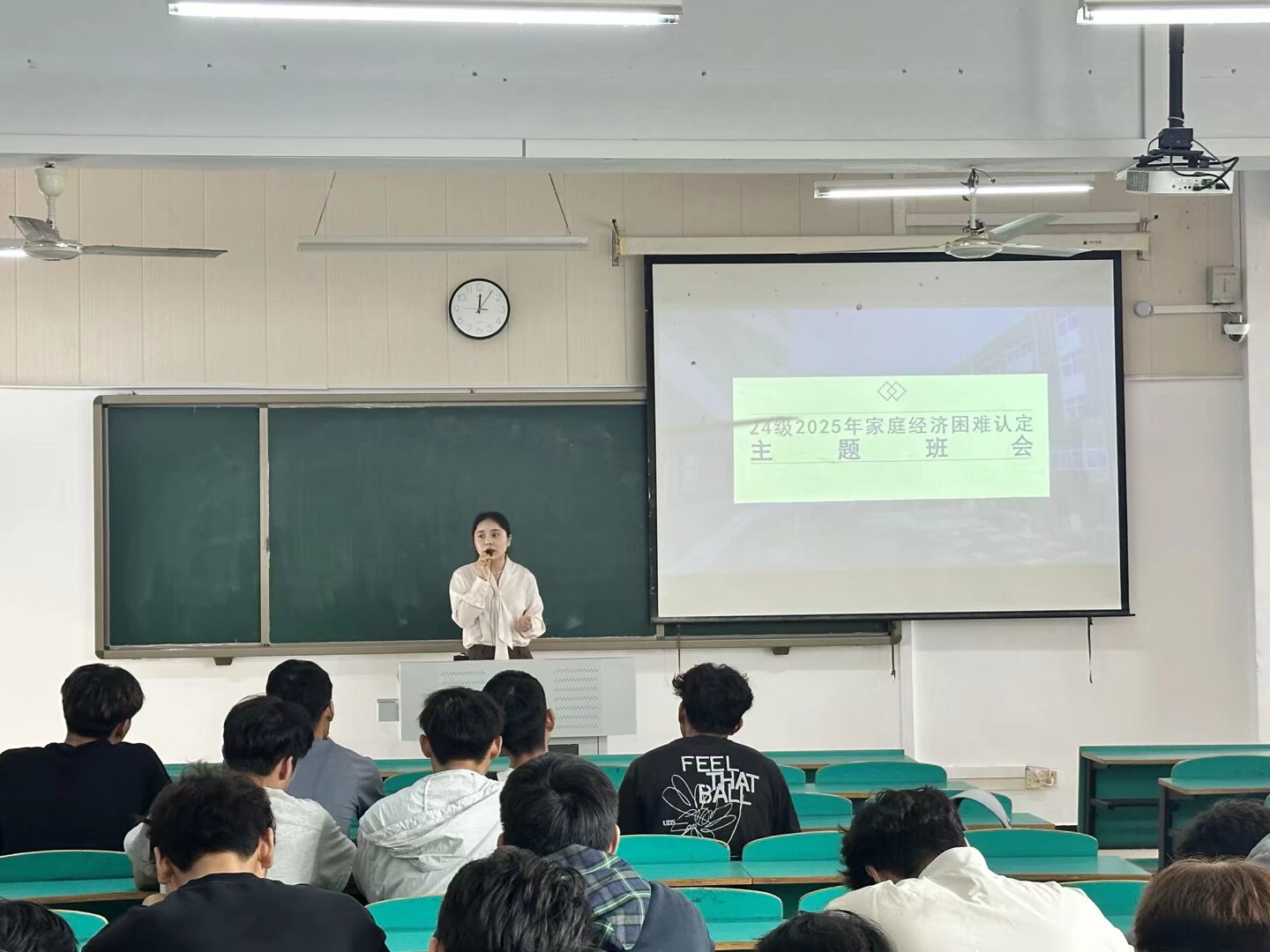 为深入贯彻落实国家资助政策,切实做好家庭经济困难学生认定与帮扶工作,确保资助资源精准分配,9月10日,辅导员赖梦玥组织24级体教1班、2班全体学生,在星驰楼308、309教室召开了2025年度家庭经济困难学生认定工作主题班会。