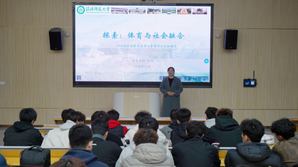 11月11日,pg娱乐电子游戏官网入口副院长张娟在淮河校区实验楼301开展题为“探索:体育与社会融合”社会体育指导与管理专业认知教育讲座,2025级社会体育指导与管理班的班主任孙长铎和全体同学参加。